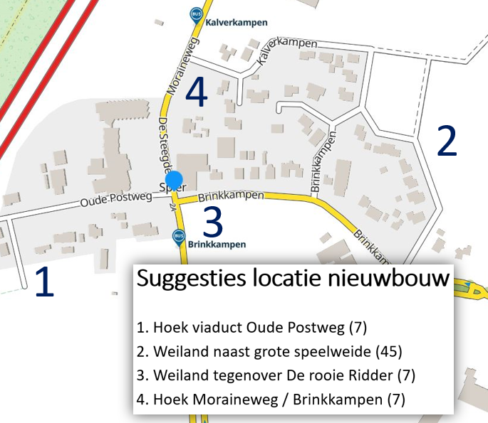 In 2022 is een start gemaakt met het maken van een nieuwe dorpsvisie voor Spier. Veel thema’s, waaronder de geluidswal en parkeervoorzieningen, waren intussen gerealiseerd. Daarom moest de dorpsvisie van Spier vernieuwd worden. Een eerste aanzet daarvoor is een dorpsenquête geweest. Het weiland naast de grote speelweide bleek daarbij de favoriete bouwlocatie. De enquête is daarna behandeld in de werkgroep wonen en gedeeld met de gemeente. Onlangs heeft de gemeente direct contact gehad met de huidige eigenaren over de mogelijkheid om de bestemming in overleg te kunnen wijzigen naar wonen.